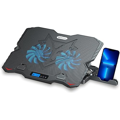 Zebronics NC5500D Powerful Laptop Cooler with Dual 125mm Fans, Silent Operation, Adjustable Fan Speed, Display, Controls, USB, 5 Step Retractable Stand and Mobile Holder