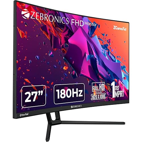 109 reviews for ZEBRONICS New Launch N27B 27″(68.5 cm) 1500R Curved Gaming Monitor, FHD 1920×1080, Antiglare Display, 300Nits, 180Hz, 1ms MPRT, HDR10, 99% sRGB, Adaptive Sync, 1 x DP | 1 x HDMI | 1 x 3.5mm