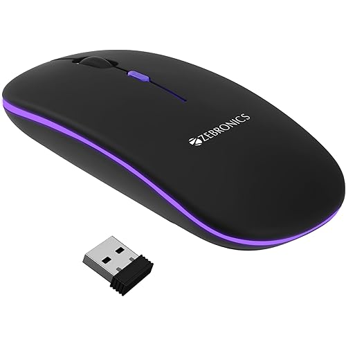 4056866 reviews for ZEBRONICS Blanc Slim Wireless Mouse with Rechargeable Battery, BT + 2.4GHz, 4 Buttons, 800/1200/1600 DPI, Silent Operation, Multicolor LED Lights