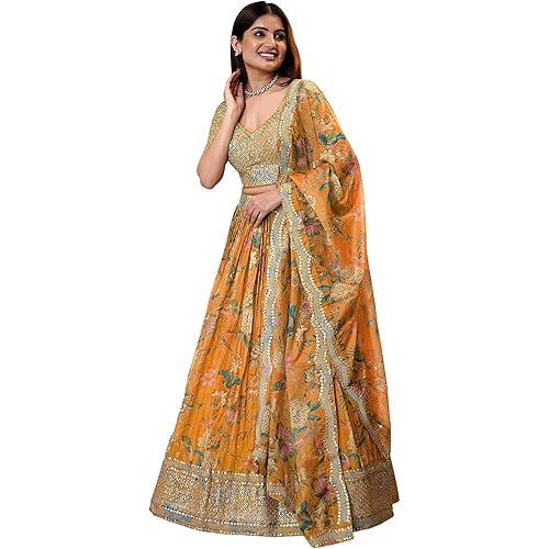 10 reviews for Zeel Clothing Women’s Print And Sequins Embroidered Organza Semi-stitched Lehenga Choli Set With Dupatta (70666-Women-Lehenga-Choli-Latest)