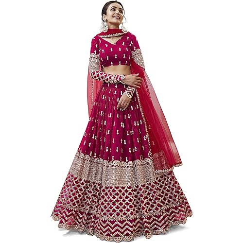 Zeel Clothing Women’s Sequins Zari Embroidered Georgette Semi-stitched Lehenga Choli With Dupatta (300-Wedding-Bridal–New-Stylish; Free Size)