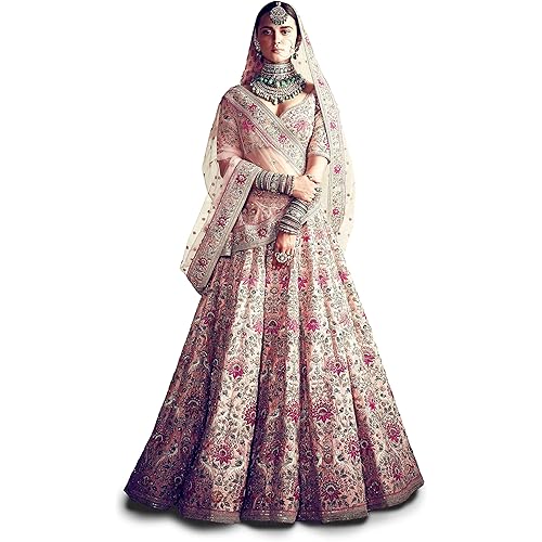 Zeel Clothing Women’s Silk Semi stitched Lehenga Choli (7035-Wedding-Bridal-Latest-Lehenga-Choli_Peach_Free Size)