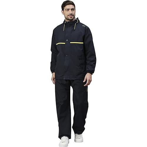 3224 reviews for ZEEL Rain Coat for Men Waterproof for Bike Riders with Adjustable Hood along with inner pockets,Waterproof Rainwear Suit with Polyester Jacket, Pants and Carrying Pouch,JS301