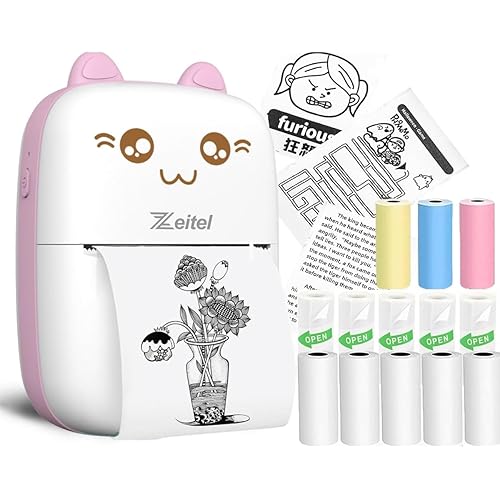 425852 reviews for Zeitel® Mini Bluetooth Thermal Printer, Portable Label Printer Inkfree Printer for Android & iOS System, Black on White Thermal Printer with 13 Roll of Print Paper, Stickers, Pink