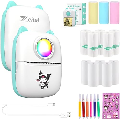 425483 reviews for ZEITEL® Mini Bluetooth Thermal Printer with LED, Portable Label Inkfree Mini Printer for Android & iOS System, Black on White Thermal Printer with 13 Roll of Paper, 5 Color Pen, 1 Kuromi Sticker, Blue