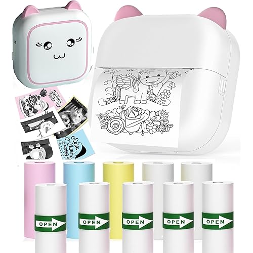 - STYLISH CARTOON BLUETOOTH PRINTER: Our bluetooth thermal printer is USB charing, built in 1200mAh battery, can be powered by powerbank or connecting any adapter. Perfect for labeling file folders, food storage, organizing clothes, food containters, jars, bottles, etc. Cute cartoon design of also adds a touch stylish to this printer, making it a nice gift for students, kids, and anyone who values the functionality and fashion. Small printer for students
