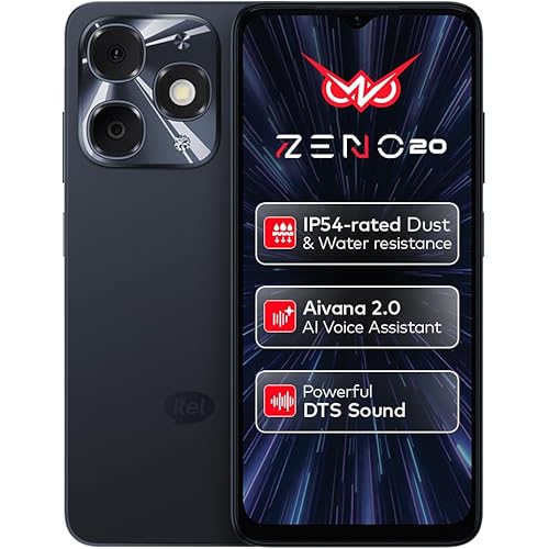 Zeno 20 | AI Vana 2.0 | 3GB RAM 64GB ROM | 6.6″ HD+ 90Hz Display | 13MP AI Camera | IP54 Rated | Always-On Display | Dynamic Bar | DTS Sound | 5000mAh Battery |3-Year Fluency|Starlit Black