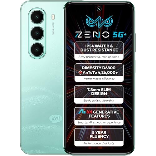 37547 reviews for ZENO 5G AI Smartphone | 8GB RAM 128GB ROM | IP54 Rated for Dust & Water Resistance | D6300 5G Processor | 6.7″ HD+ 120Hz Punch-Hole Display | 50MP Camera | 5-Year Fluency | Wave Green