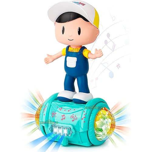 - π BUMP AND GO ACTION WITH AUTOMATIC DIRECTION CHANGE: Designed to keep your child entertained, this dancing boy toy automatically changes direction when it encounters obstacles. It offers non-stop action, moving around the room without needing supervision, encouraging babies and toddlers to crawl or walk along with it.