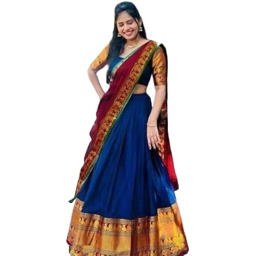 ZITON ARICO MART Women’s Indian Traditional Kanjivaram Silk Pure Weaving Lehenga Choli Along With Dupatta And Blouse Piece, Half Saree (Unstitched)