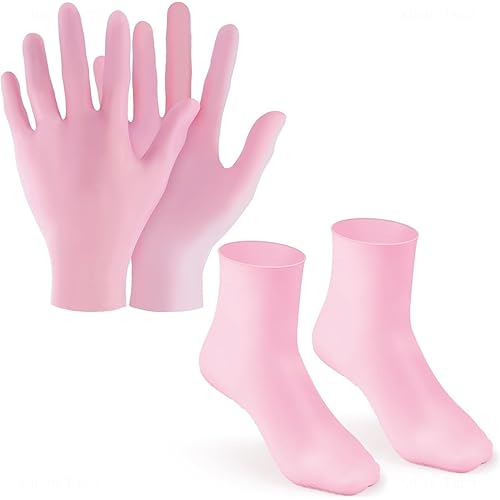 3 reviews for ZTOCOZ 2 Pairs Silicone Moisturizing Glove Socks Set, Anti Slip Soft Spa Gel Socks Softening Feet Dry Cracked Skin, Women Spa Pedicure Socks for Foot Hand Softening, Foot Care After Pedicure (Pink)