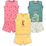 ₹323.00 (as of March 4, 2026 17:48 GMT +00:00 - More infoProduct prices and availability are accurate as of the date/time indicated and are subject to change. Any price and availability information displayed on [relevant Amazon Site(s), as applicable] at the time of purchase will apply to the purchase of this product.)Baby Boy and Girl's Cartoon Print Sleevelees Soft Cotton Casual Vest Jhabla T-Shirt with Shorts Dress for Summer Wear Kids Infant Toddler New Born Baby Clothes (Set of 6) (12-18 months)