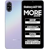 ₹19,800.00 (as of March 6, 2026 17:51 GMT +00:00 - More infoProduct prices and availability are accurate as of the date/time indicated and are subject to change. Any price and availability information displayed on [relevant Amazon Site(s), as applicable] at the time of purchase will apply to the purchase of this product.)Samsung Galaxy A07 5G Smartphone (Light Violet, 4GB RAM, 128GB Storage) | 120Hz Refresh Rate | Massive 6000mAh Battery | 50MP True Dual Camera | 6 Gen OS Upgrades | Knox Vault