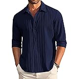 ₹848.00 (as of October 27, 2025 17:59 GMT +00:00 - More infoProduct prices and availability are accurate as of the date/time indicated and are subject to change. Any price and availability information displayed on [relevant Amazon Site(s), as applicable] at the time of purchase will apply to the purchase of this product.)FINIVO FASHION Men's Casual Cotton Plain Button Down Shirt Long Sleeve Textured Summer Beach Shirt for Men
