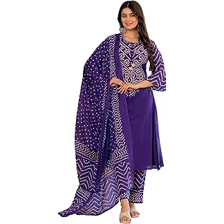 Pistaa’s Women’s Bandhani Printed Regular Pure Cotton Kurta Set With Dupatta