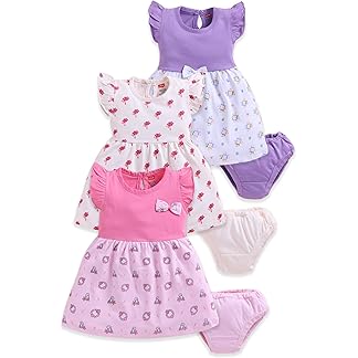 LuvLap Baby Girls Regular Fit 100% Cotton Half Sleeve Girls Knee Length Frock Pack of 3
