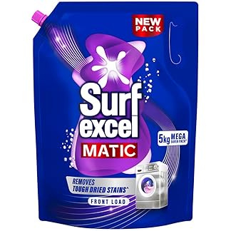 Surf Excel Matic Front Load Liquid Detergent 5L Refill Pouch, Specially designed to remove Tough Dried Stains, 1st time in Washing Machine