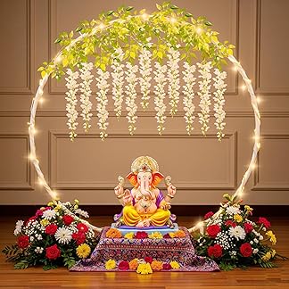 SpecialYou® Ganpati Decoration Setup for Home with PVC White Decoration Stand for Backdrop for Pooja, 3Mtr Light & 6 White Wisteria, Ganesh Decorations Items for Home Decor- 8Pcs
