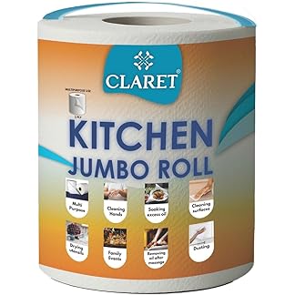 Claret Kitchen Jumbo Towel Tissue Paper Roll Napkin 300 Pulls Each Roll | Soft & Highly Absorbent | 100% Natural | 2 Ply | Pack of 1 Roll | Ideal For Cleaning Kitchen Accesssories Microwave & OTG