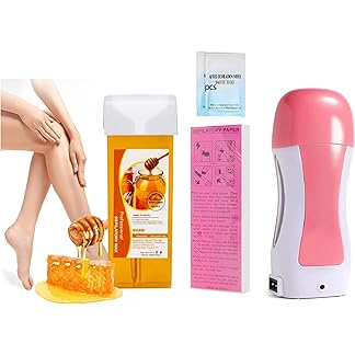 LRHAK Waxing Kit Combo Wax Heater Machine Wax Hair Removal Wax Warmer, Roller Roll on Heater Machine Kit Refill Cartridges, and Waxing Strips for Women (Wax, Roller Honey Wax)