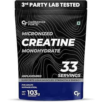 Carbamide Forte Creatine Mono hydrate Powder | Micronized Monohydrate Creatine 103g | Micronized Monohydrate Supplement for Lean Muscle, Strength & Energy – Unflavoured – 33 Servings – 103g