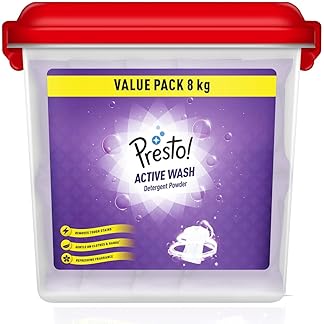 Amazon Brand – Presto! Active Wash Detergent Powder | 8 Kg | 1kg X Pack of 8 | Bucket | Tough On Stains | Gentle On Fabrics | Colour-Safe | Refreshing Fragrance | Machine And Hand Wash
