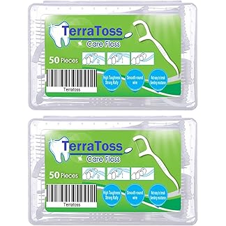 TerraToss Dental Floss Picks [100 Pcs] | 2 Box of 50 Pcs each | Premium Toothpicks Box for Fresh Breath, Clean Teeth & Healthy Gums