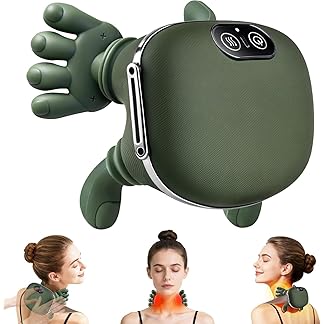 Bionic Heated Massager, Wireless Portable Shiatsu Neck and Back Massager, Electric Deep Tissue 4D Kneading Massage, Simulated Human Hand Design for Pain Relief and Muscle Relax for Adults.(Green)