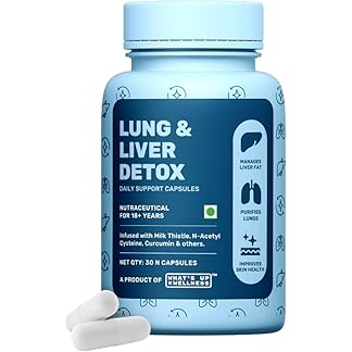 What’s Up Wellness Lung & Liver Detox Supplement Capsules with N-Acetyl Cysteine and Milk Thistle, For Fatty Liver, 30 Capsules