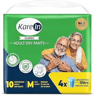 KareIn Classic Adult Diaper Pants, Medium 75 – 100 Cm (30″- 40″), 10 Count, Unisex, Leakproof, Elastic Waist, Wetness Indicator