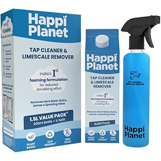 Happi Planet | Tap Cleaner & Limescale Remover | India’s 1st Foaming Formulation for Reduced Scrubbing Effort, Non-Toxic | 1500 ml | All Purpose Cleaner Suitable for Bathroom, Tap, Shower, Mirror