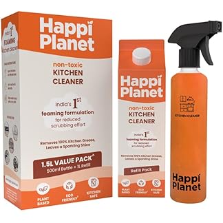 Happi Planet | Kitchen Cleaner | India’s 1st Foaming Formulation for Less Scrubbing | 1.5L | Suitable for Stoves, Chimneys, Counter Tops, Appliances, Walls & Cabinets | Non Toxic & Natural