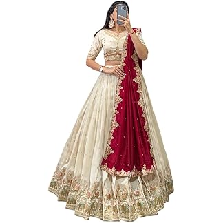 JULEE Women’s Vichitra Embroidered Semi-Stitched Lehenga Choli (Sonpari LH-New)