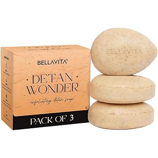 Bellavita De-Tan Wonder Soap | Pack of 3 | Exfoliating Face & Body Soap for Tan Removal | Enriched with Kojic Acid, Jojoba Oil & Alpha Arbutin | Paraben & Mineral Oil Free, 100g