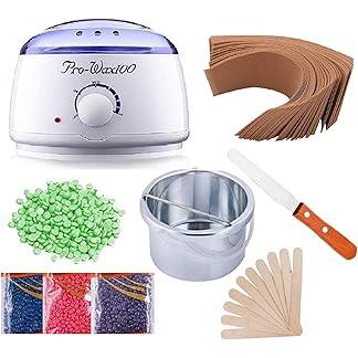 KAHRL Wax Heater Combo 100gm Brazilian Stripless Formula for Face & Body with Spatula, Ideal for Upper Lips, Chin, Cheeks, Hairline, Bikini & Legs, Automatic Heating (Wax, Full Waxing Kit)