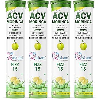 ACV Moringa 15 Effervescent Tablets Apple Cider Vinegar With No Added Sugar For Gut Health | Weight Loss | 500mg (Pack of 4, Shikanji)