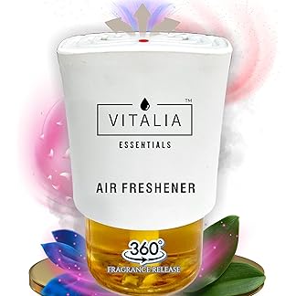 Vitalia Essentials Lemon Burst Electric Plug-in Automatic Air Freshener | 1 Machine + 1 Refill(45ml)| 3W Low Power Consumption | Room and Bathroom Freshener | Moderate-Strong