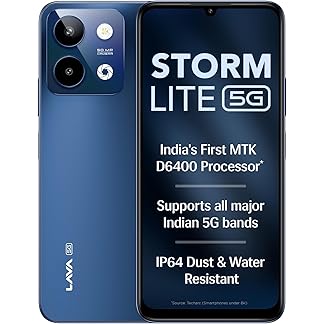 Lava Storm Lite 5G (Astral Blue, 4+4*GB RAM, 128GB Storage) | India’s First MTK Dimensity 6400 Processor | 50MP AI Camera | IP64 Rated | 120 Hz Display | 5000mAh Battery | Supports All 5G Bands