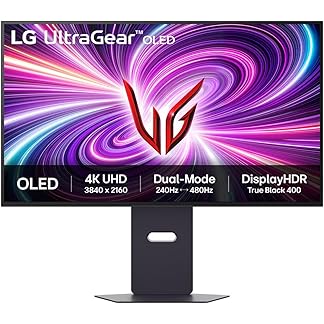 LG 32GS95UV 32 Inch Ultragear OLED Gaming Monitor, UHD, 3840 x 2160, 240Hz, 0.03ms, DisplayHDR, True Black 400, AMD FreeSync Premium Pro, NVIDIA G-Sync, HDMI 2.1, DP, Tilt/Height/Swivel Stand, Black