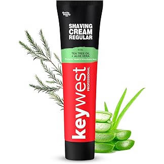 Keywest Regular Shaving Cream 125gm for Men All Skin Types | Enriched with Tea Tree Oil & Aloe Vera | Protects, Heals & Smoothens Skin | Prevents Razor Burns