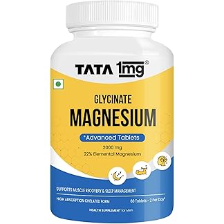 Tata 1mg Magnesium Glycinate Tablets | High Absorption Chelated form for Muscle Recovery, Sleep & Nerve Health | 2000mg Per Serving – 60 Veg Tablets