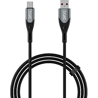 boAt Type A to C 65W Fast Charging Cable with 480 Mbps Data Transfer, Tangle-Free Cable in Premium Nylon Braided Design & Durable Aluminium Alloy Shell (Carbon Black)