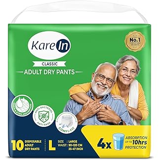 KareIn Classic Adult Diaper Pants, Large 90-120 Cm (35″- 47″), 10 Count, Unisex, Leakproof, Elastic Waist, Wetness Indicator