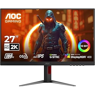 AOC Q27G4F 27” QHD Gaming Monitor, 2560×1440 IPS Panel, 180Hz Refresh Rate, 0.5ms Response, G-Sync, HDR10, Super Color Mode, Dual HDMI 2.0 Ports, Height Adjustable Stand, 300nits Brightness