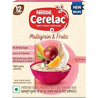 CERELAC Baby Cereal | No Refined Sugar | Multigrain & Fruits for 12-24 Months Baby | Omega 3 Iron Protein Calcium for Babies | Instant Infant Cereal | Travel Friendly | 300g