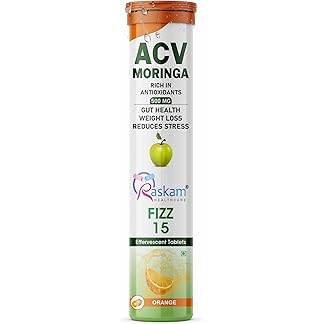 Raskam ACV Moringa Effervescent Tablets | Fizz 15 Tablets in Orange Flavour | Natural Energy & Immunity Booster with Antioxidants | 500mg (Pack of 1)