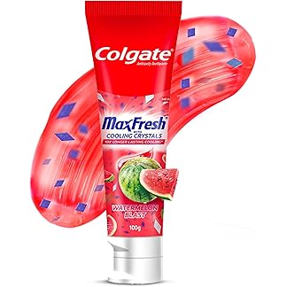 Colgate MaxFresh Watermelon Blast Gel Toothpaste, with Cooling Crystals, Watermelon Flavour, and Ultrafreeze Technology for Intense Freshness, 100g