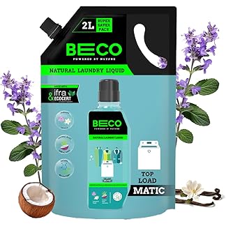 Beco Natural Liquid Detergent Top Load – 2L Refill Pack | Tough Stain Removal | Lavender & Vanilla Freshness | Retains Brightness & Shine | Chemical Free | Top Load Washing Machine Detergent Liquid
