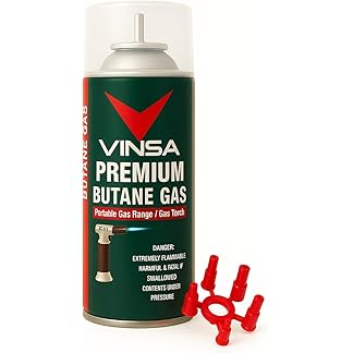 Vinsa Butane Gas Refill Can 225g | 550ml, Universal Lighter Refill Canister with Long SS Nozzle & Adapter | Butane Fuel for Gas Lighters, Kitchen Lighter, Candle & Metal Refillable Lighters