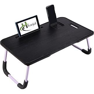 Hitanjal Foldable Wooden Mini Laptop Table for Bed, Study Table with Drawer, Mobile Holder (New Black)